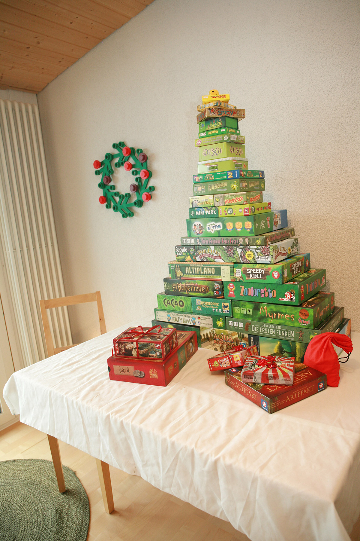 Die Aufgabe: Bau einen Christbaum aus Spielen! Mussten wir natürlich gleich in Angriff nehmen 😊 Vielleicht wäre das auch etwas für Dich?